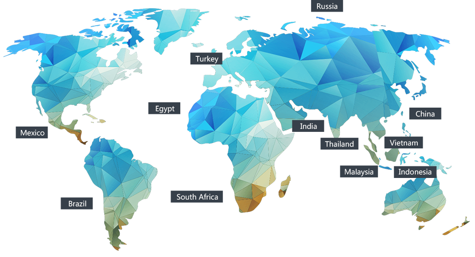 Southeast Asia,America,Europe,especially India,Thailand,Indonesia